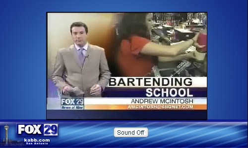 TweetSan Antonio Bartending School - As Seen On TV! Our San Antonio Bartending School has been featured on two local television newcasts. See the actual newcasts below. CNN - Bartending Schools Our San Antonio Bartending School on Fox 29 Our San Antonio Bartending School on KENS 5 Our San Antonio Bartending School